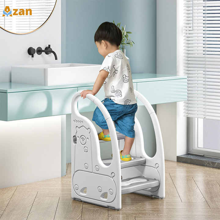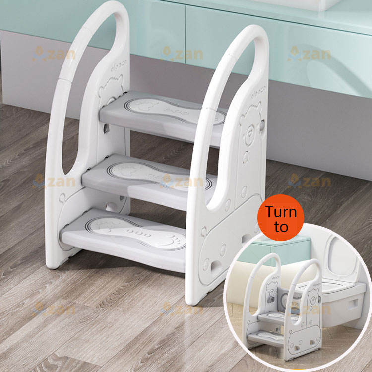 Tabouret de lavabo antidérapant pour enfants, marchepied rehausseur en plastique à trois marches, tabouret domestique avec main courante pour bébés et enfants
