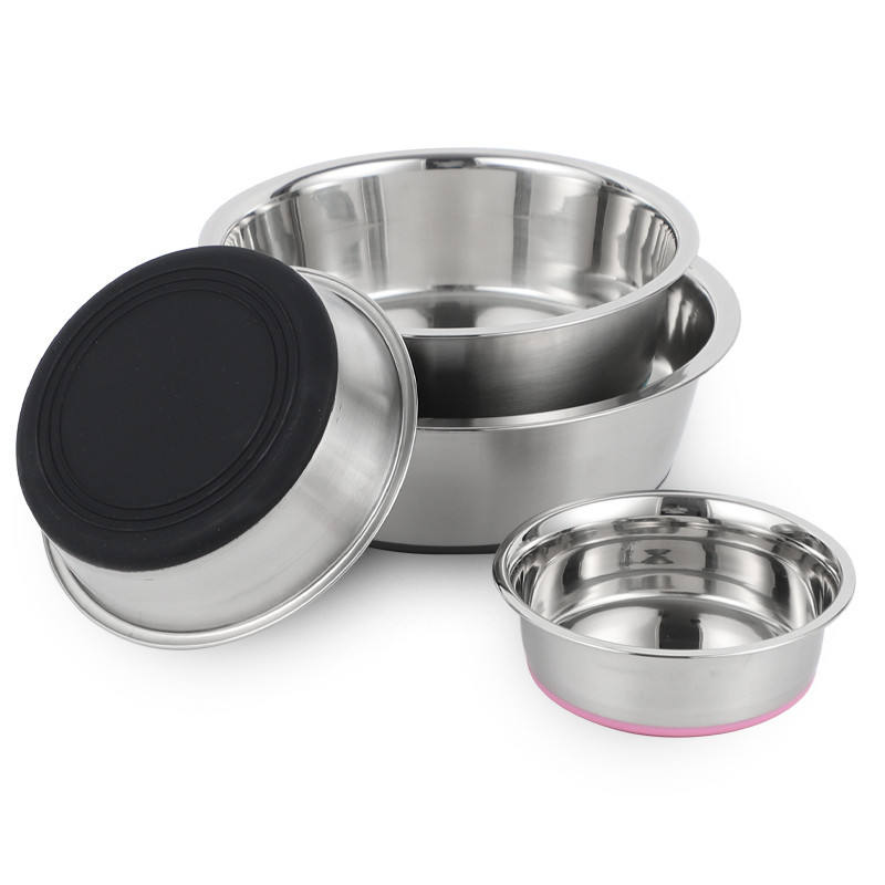 Bol antidérapant en acier inoxydable à double paroi pour chats, gamelle de base pour nourriture et eau, base en caoutchouc unique, design arrondi sous vide