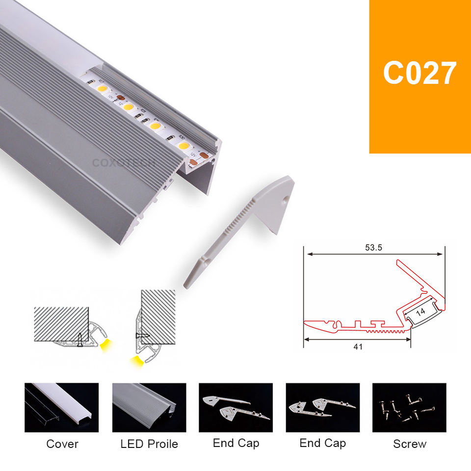 Profil LED antidérapant pour nez de marche avec éclairage intégré pour une éclairage sécurisée des escaliers et des zones de passage intérieures
