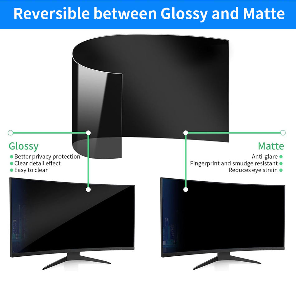 Protecteur d'écran de confidentialité anti-espion pour moniteur à écran incurvé, filtre à lumière bleue pour ordinateur de 17 à 27 pouces