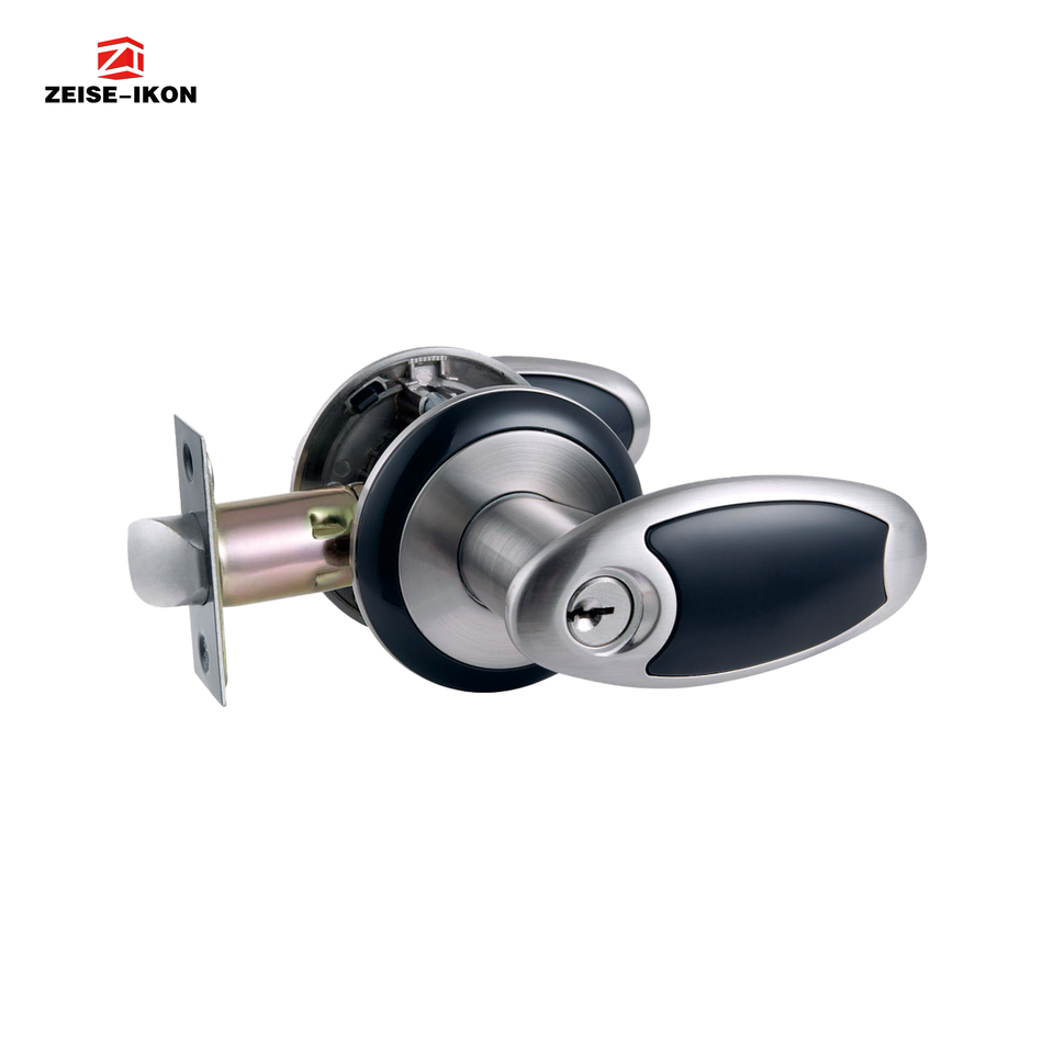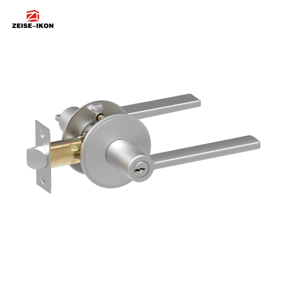 Serrure de porte d'entrée antivol durable et étanche avec levier, finition nickel satiné, bouton réglable, pêne dormant à cylindre unique, clé 70 mm