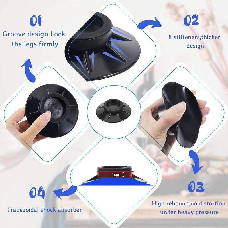 Patins anti-vibration en caoutchouc universels pour sèche-linge, réfrigérateur, machine à laver et meubles – Prévention du bruit et base fixe antidérapante