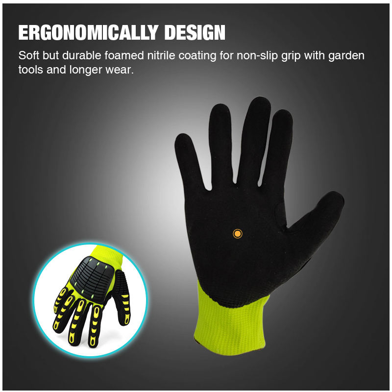 Gants de travail anti-vibration Revêtement de paume en mousse de latex sablonneux Gants réduisant les impacts de sécurité pour hommes