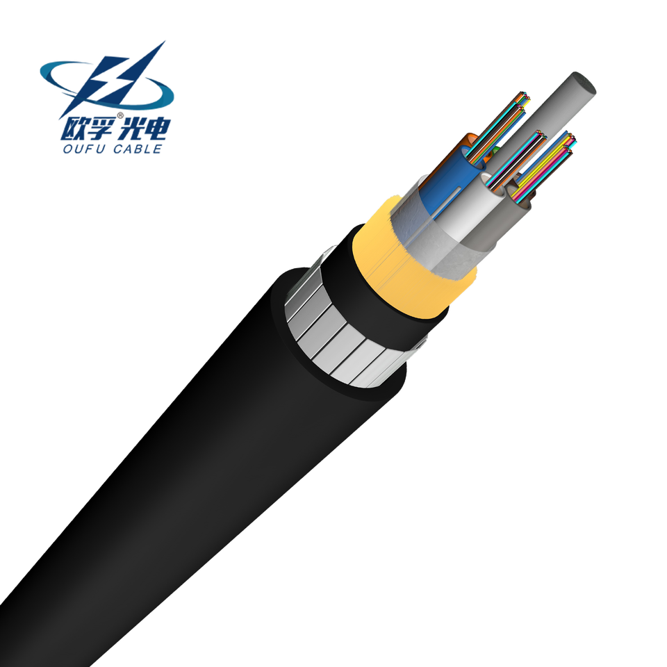 Câble à fibres optiques anti-rongeurs à double gaine, non métallique, FRP SM 48 96 144 288 cœurs, câble à fibres optiques blindé PE ADSS 6-12 cœurs