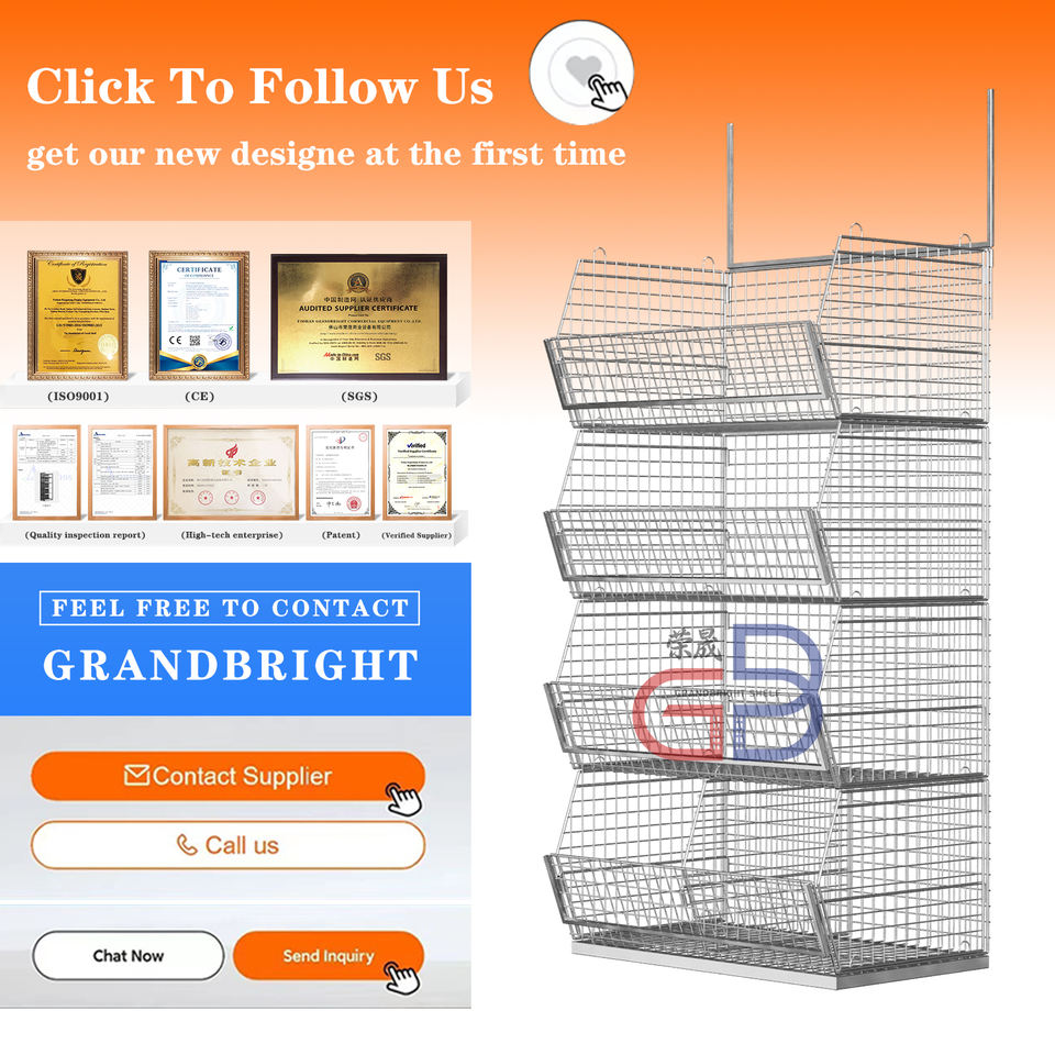 Étalage de panier incliné pliable multicouche électro-plaqué, antirouille et durable, pour supermarchés et magasins de proximité