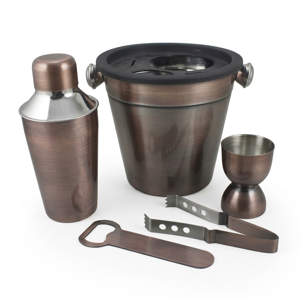 Kit de bar à cocktails classique anti-rouille et écologique pour la préparation de cocktails à domicile avec acier inoxydable brun