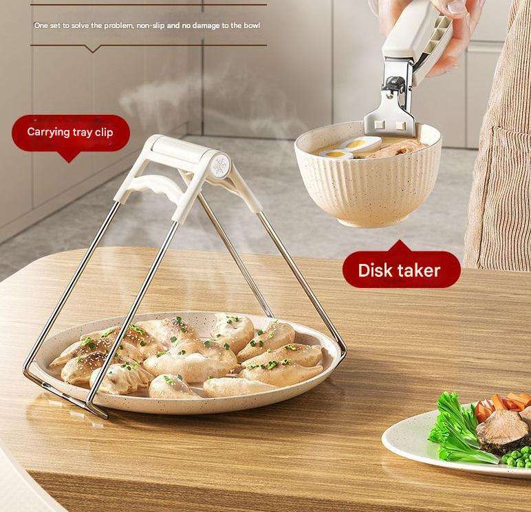 Ensemble de 2 pièces anti-brûlure Pince à main anti-brûlure Plateau de levage antidérapant Artefact de cuisine Bol