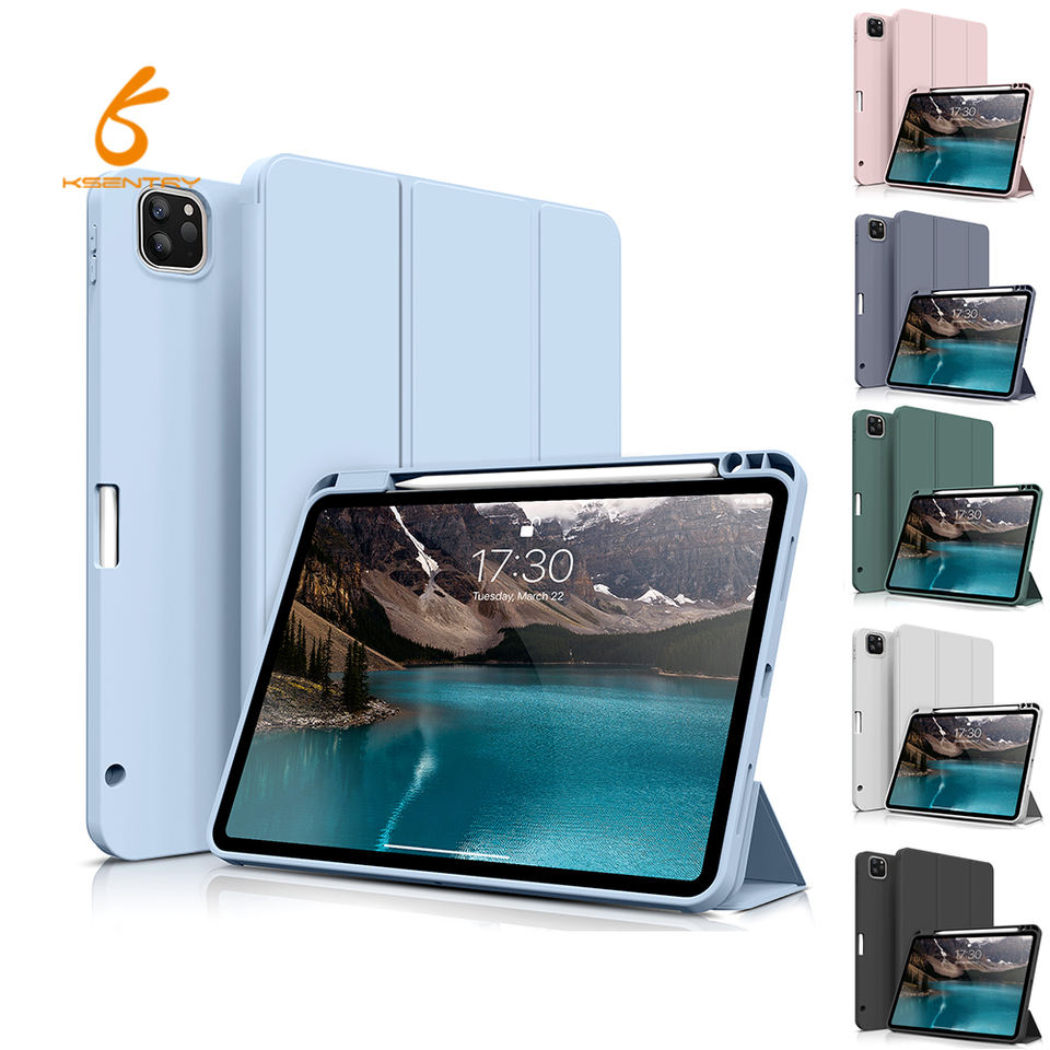 Étui antichoc Ksentry en TPU souple et cuir PU, transparent, anti-rayures, sensation peau de bébé, avec support triple et fonction veille/réveil automatique, pour Pencil