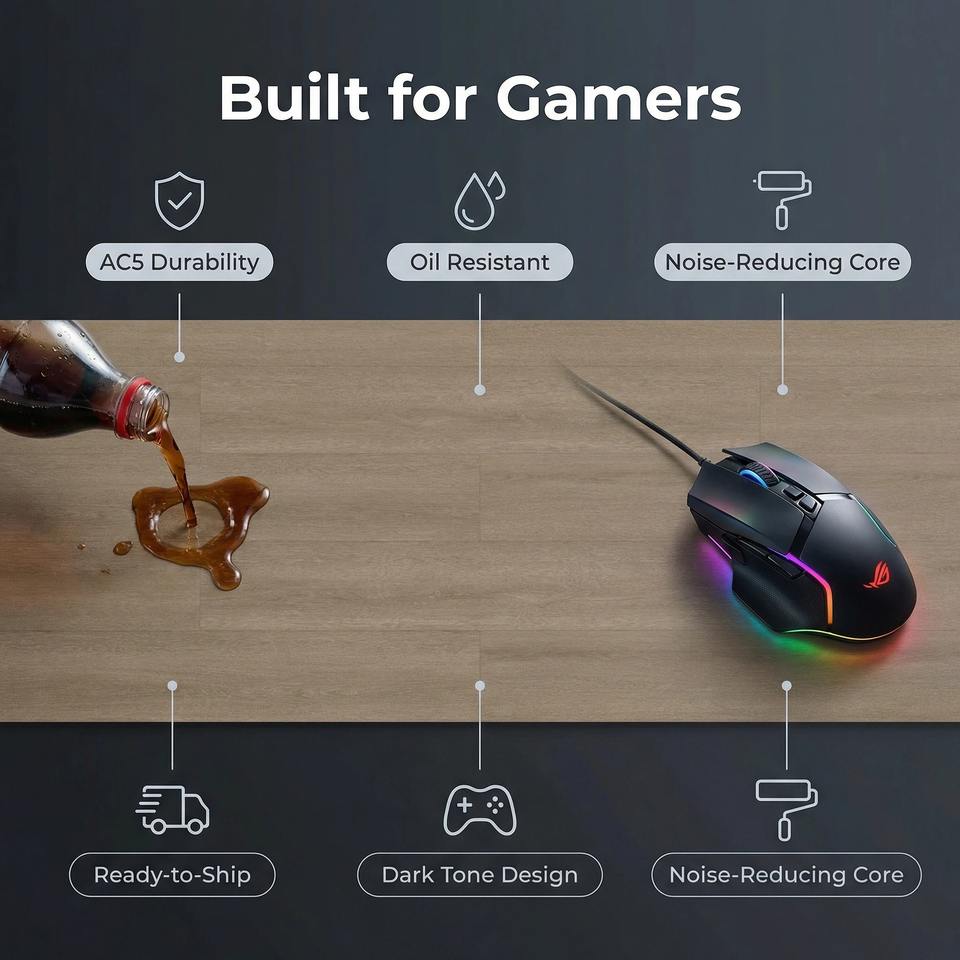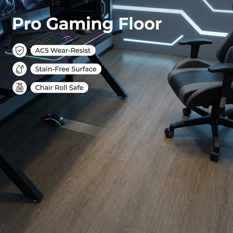 Plancher stratifié multi-couches anti-rayures, résistant à l'huile et AC5, en bois pour salles de jeux