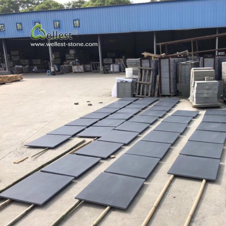 Carrelage antidérapant imperméable pour piscine et patio en pierre bleue