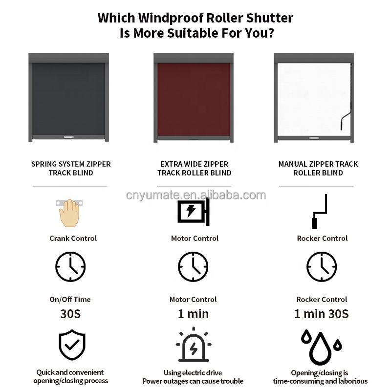 Stores à enrouleur manuels à écran zippé extérieur anti-UV pour fenêtres, balcon, restaurant, gazebo, jardin