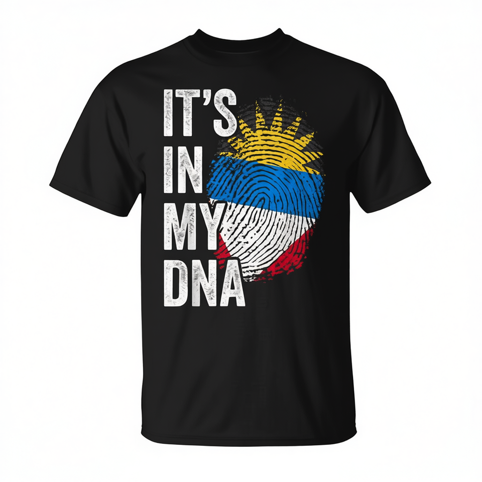T-shirt promotionnel premium « Les racines de la fierté, l'ADN de ma génèse » avec drapeau d'Antigua-et-Barbuda