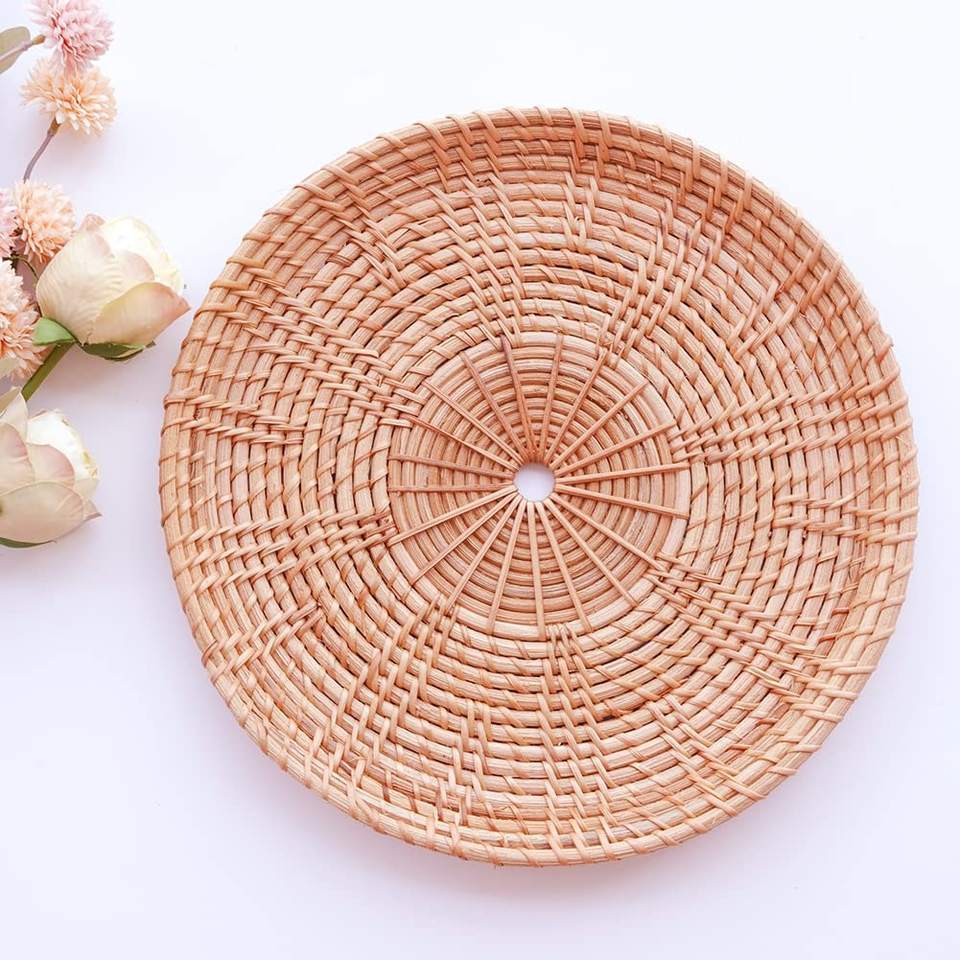 Plateau de service rond en rotin antique de 11 pouces Plateau de table d'entrée décoratif élégant avec clés à bougie Vase à pain à distance