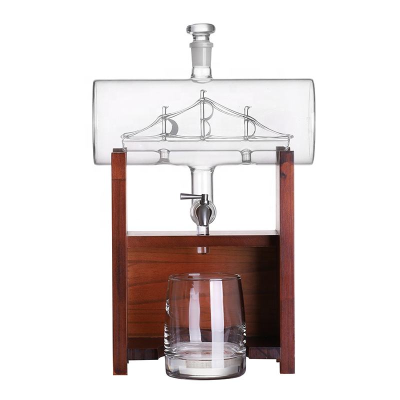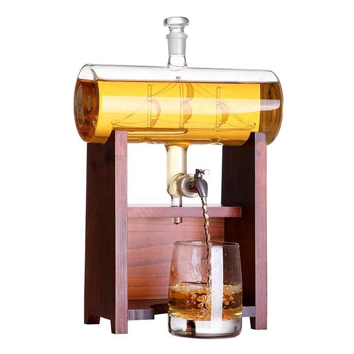 Antique Barrel Ship 1300ML Decanter Dispenser Bottle Set Wholesale Bourbon Wine Rum Tequila Glass for Whisky Complete Gift Box