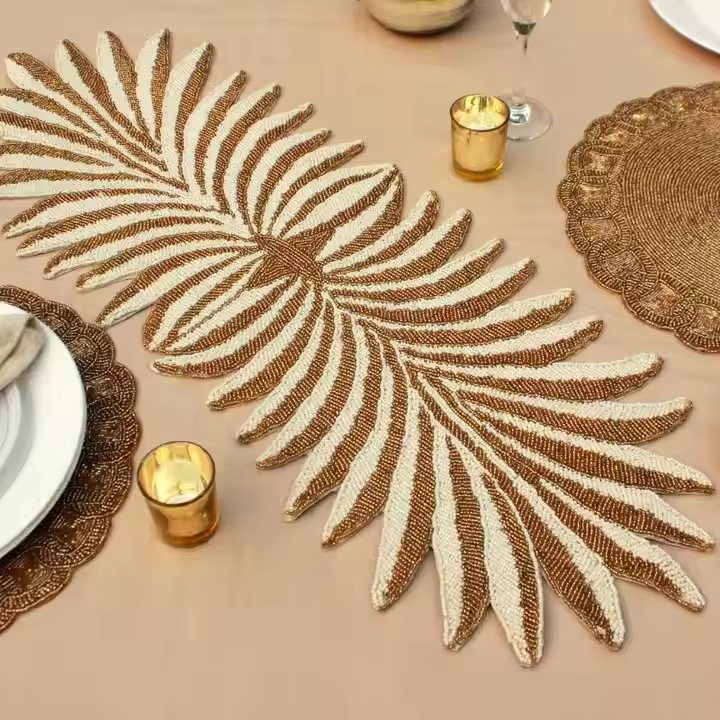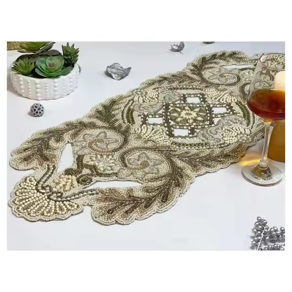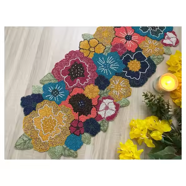 Décoration brodée par coureur perlé antique avec les sets de table colorés multi Antiquité naturelle de finissage de la conception 2025 élégante colorée