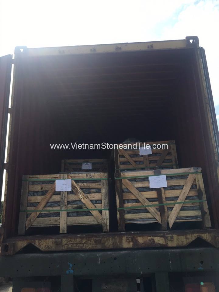 Carreau de mur extérieur en pierre de basalte noir antique, revêtement extérieur en granit cuir noir du revêtement mural d'usine du Vietnam