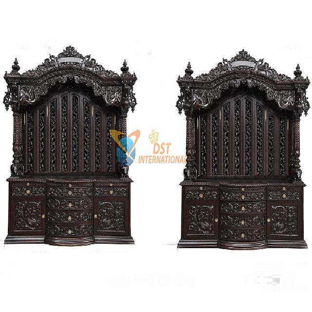Temple de Pooja Antique sculpté à la main, noir, en bois de teck, fait à la main, pour la maison, hindo, Ghar