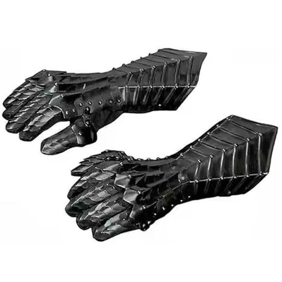 Antique Black Silver-Plated Steel Customized Armor Gloves Polished Medieval Knight Crusader Gauntlets for Men Premium Metal Gift