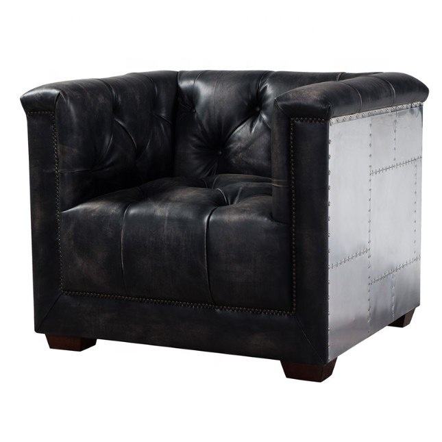 Antique Black for Aviator Genuine Leather Sofa Chair Stylish Leisure Chair for Home Furniture