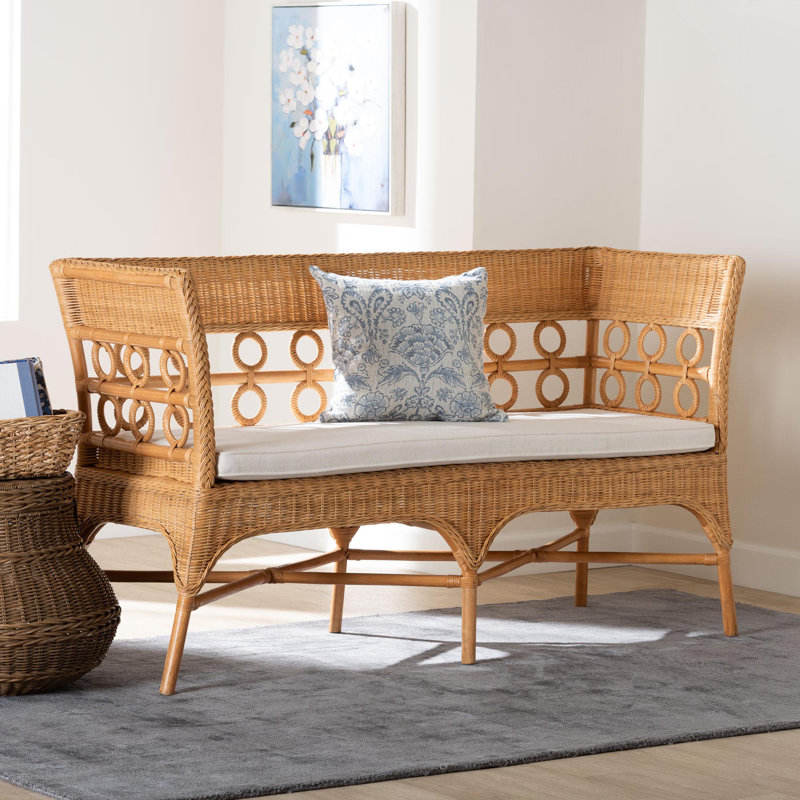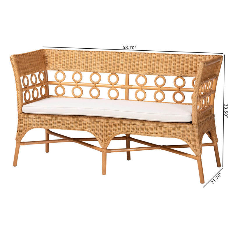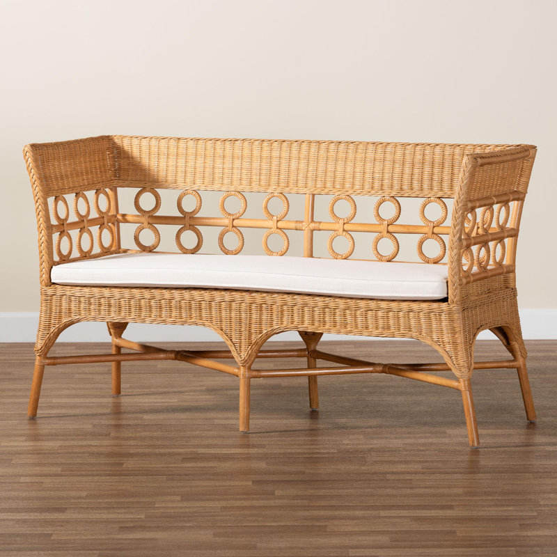 Banc de salle à manger en rotin miel clair de bohème antique avec accoudoirs meubles d'extérieur en bois rustiques pour hôtels de patio et de jardin