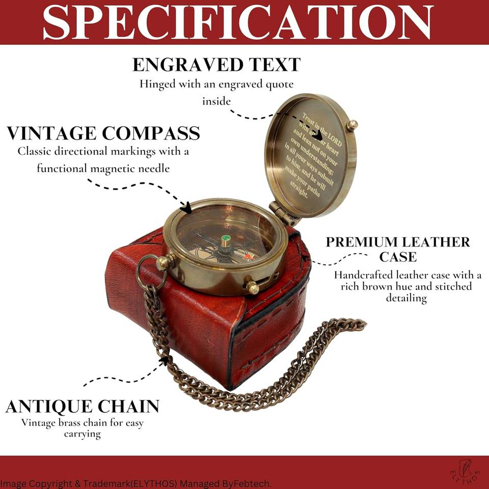 Boussole en laiton antique avec étui en cuir, gravure « Soyez courageux », cadeau de Noël, Nouvel An et Thanksgiving pour les hommes, les garçons et les fils