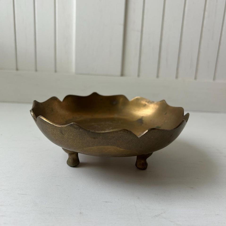 Bol de service rustique artisanal en laiton antique avec finition marron et gris terreux de forme organique