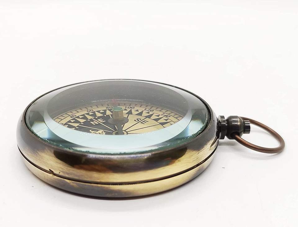 Boussole de poche en laiton antique avec loupe gratuite porte-clés boussole de navigation pour camping en plein air et randonnée cadran affichage pointeur