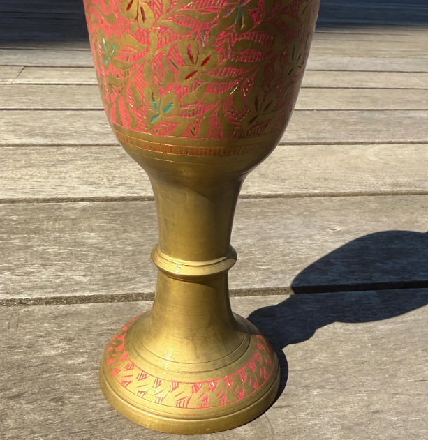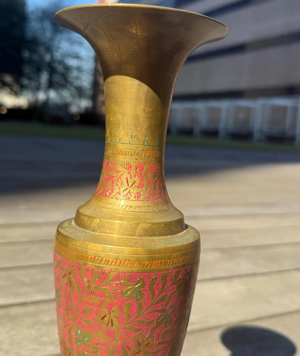 Product Name:Antique Brass Vase 18 Inch Tall Hand Etched