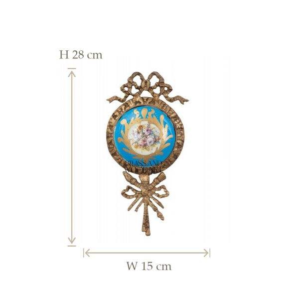 Antique Brass Wall Hanging Set with Blue Porcelain Plates and Classic Floral Hand Painting