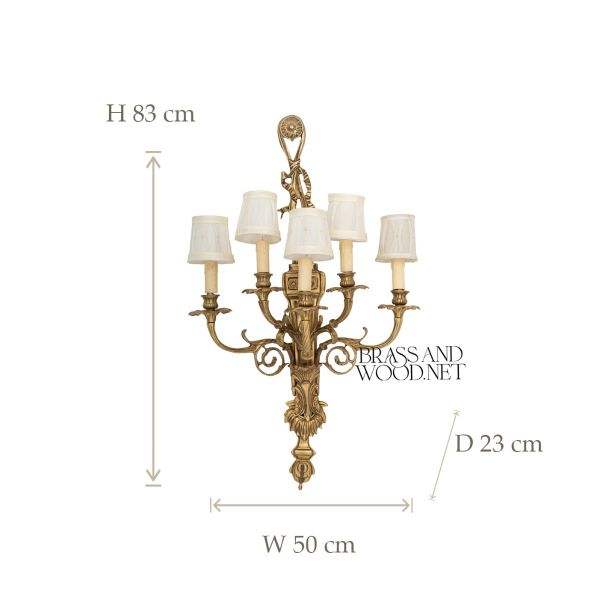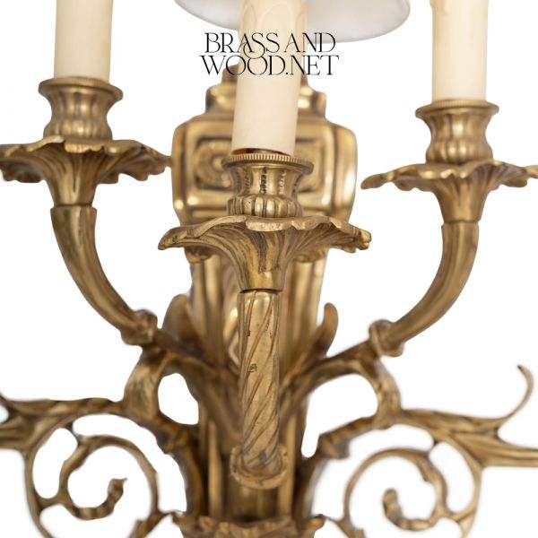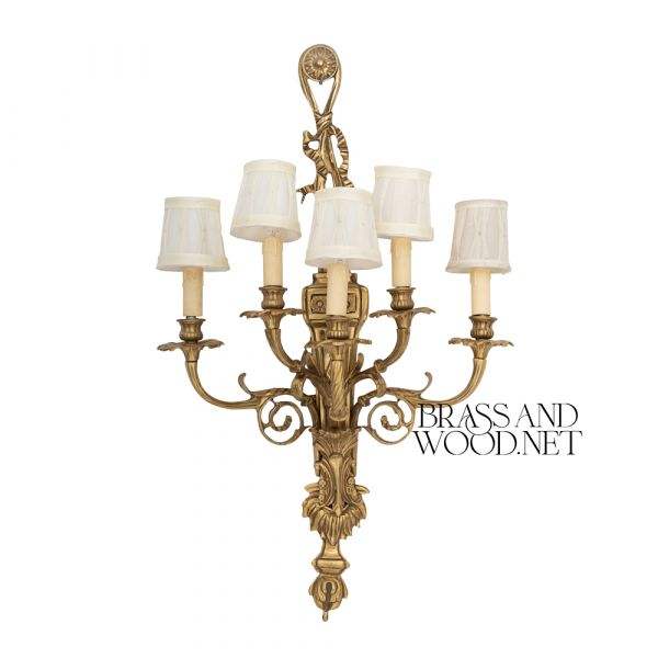 Antique Brass Wall Sconce with Six Arm Design and Fabric Shades for Classic Luxury Home and Interior Lighting Decor