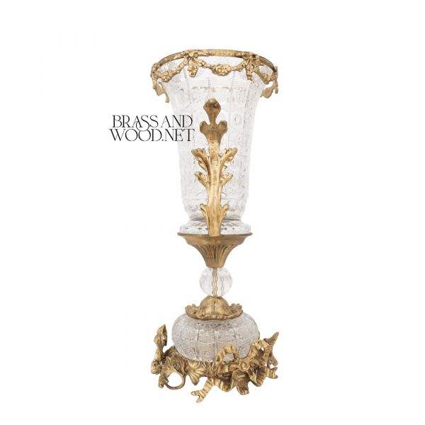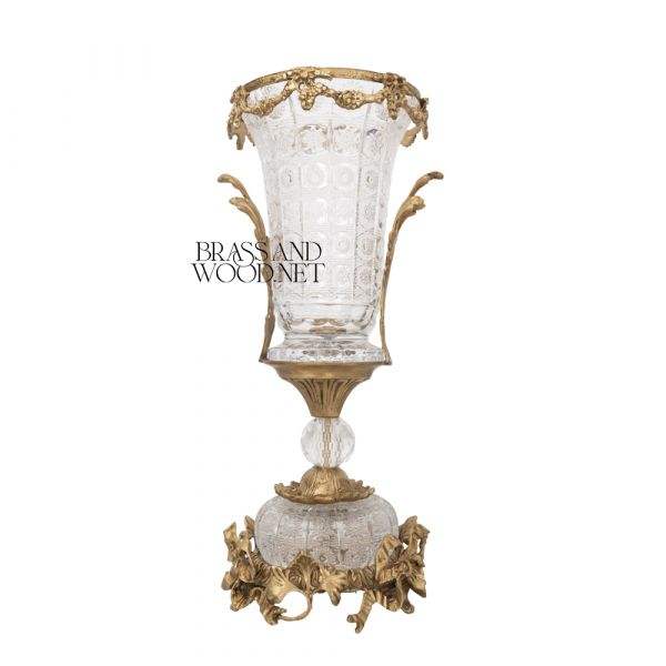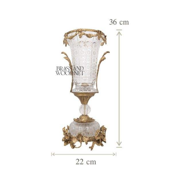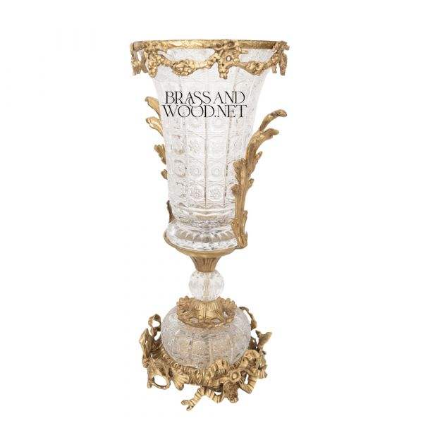 Antique Brass and Glass Vase with Ornate Golden Rim Decorative Cut Glass Details and Classic Base for Luxury Interiors
