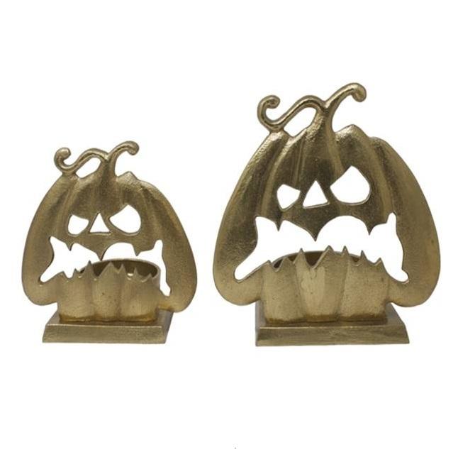Figurines de citrouille en bronze antique, ensemble de décoration d'Halloween en métal massif, 3 petites statues de table, cadeau en vrac pour la décoration de la maison, aluminium.