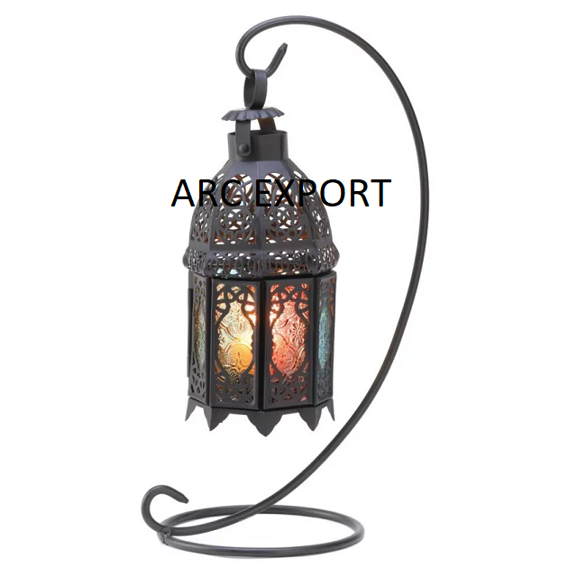 Lanterne de décoration de table en métal et en verre de couleur marron au design antique Lanternes de décoration élégantes pour accessoires éclaircissants