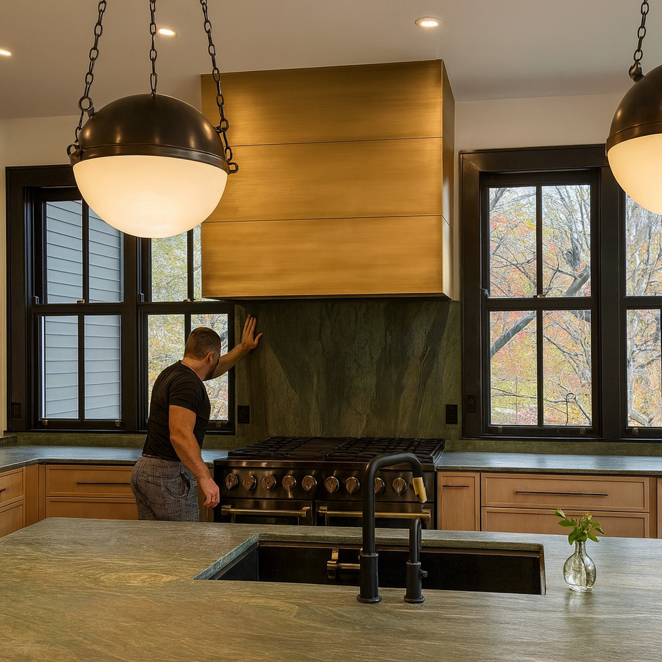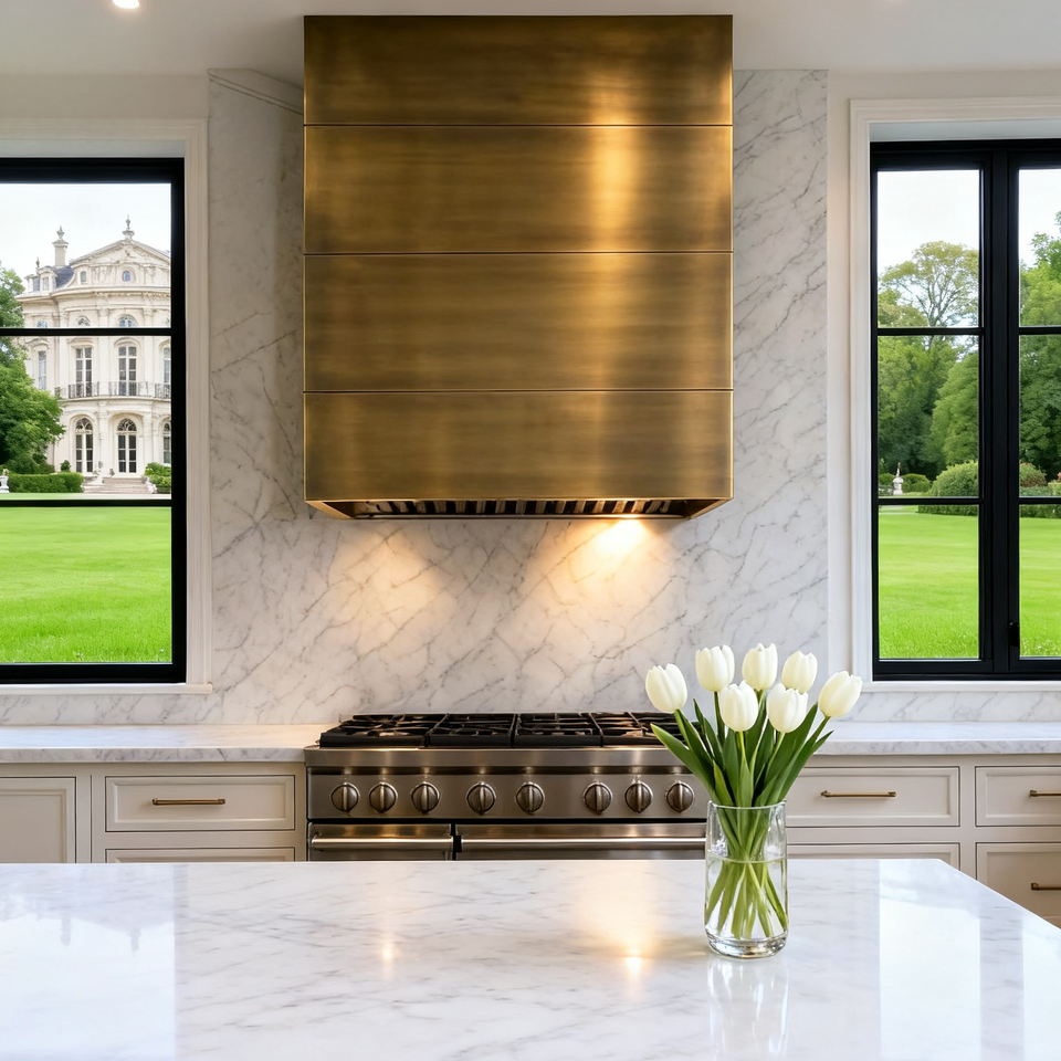 Hotte architecturale sur mesure en laiton