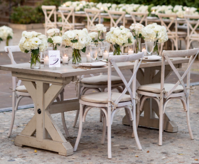 Tables à manger en bois de location d'événement classique antique pour la location de mariage et d'événement