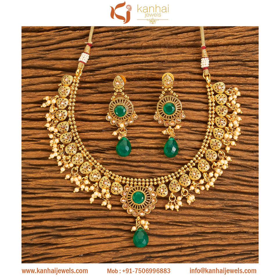 Colliers classiques antiques en acier inoxydable, avec plaqué or vert 18488