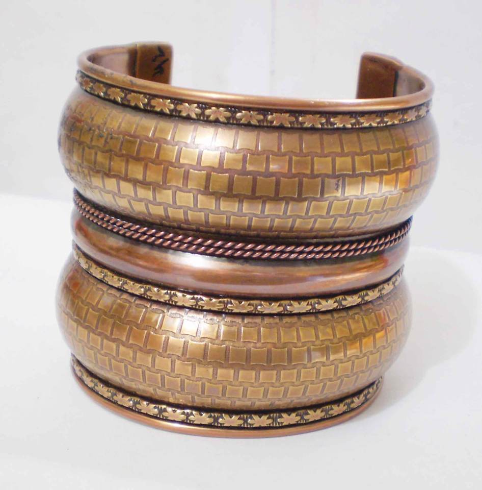 Bracelet en cuivre antique pour femmes, design unique à triple couche, texture en tresse, large, solide, élégant, artisanat en métal
