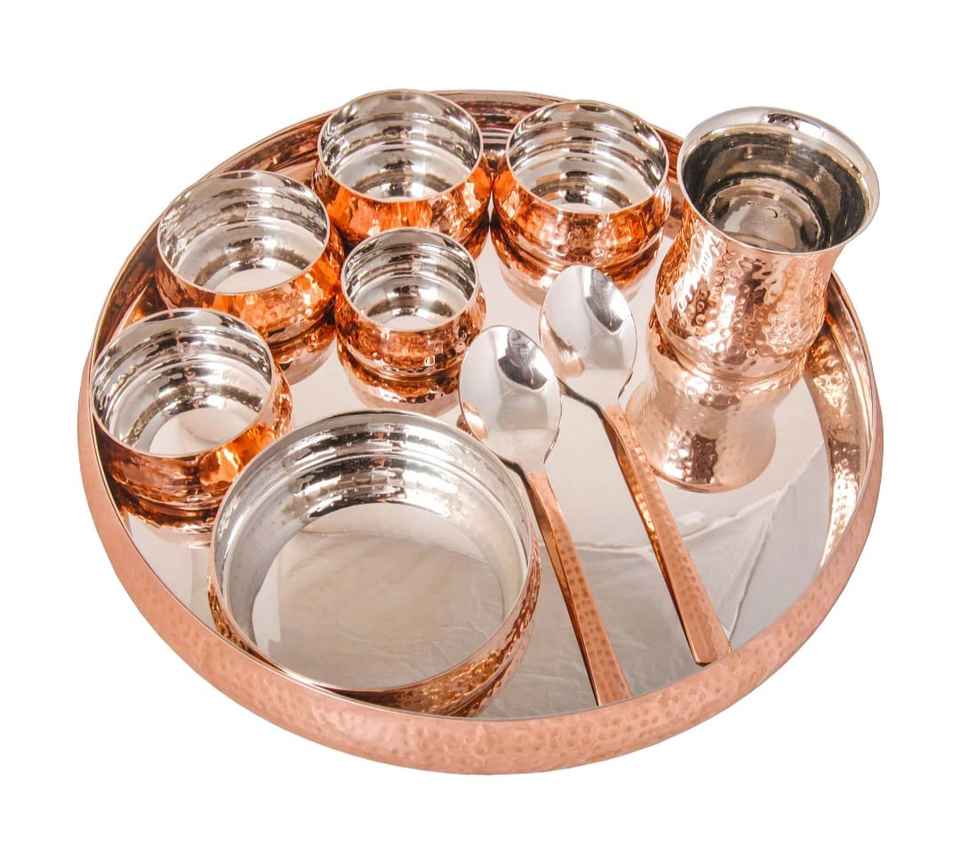 VISHAL HANDICRAFT Ensemble de thali en cuivre antique, vaisselle classique en métal fabriquée à la main, assiette en cuivre pur martelé, qualité supérieure pour les fêtes