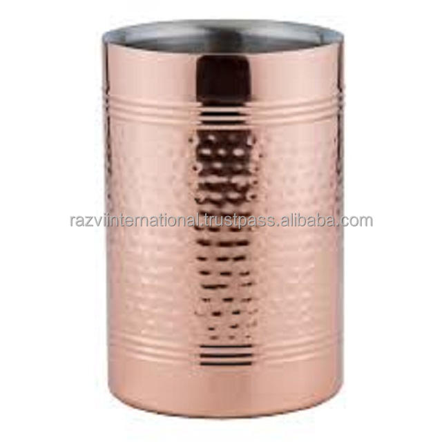 Refroidisseur de vin à double paroi en cuivre antique et acier inoxydable Seau à glace au design martelé pour boissons