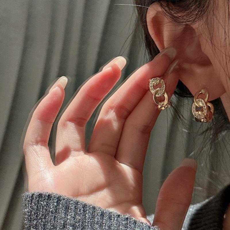 Boucles d'oreilles en argent pur S925 courbées antiques, élégantes, au tempérament français, avec micro-incrustations de cristaux circulaires, bijoux vintage légers