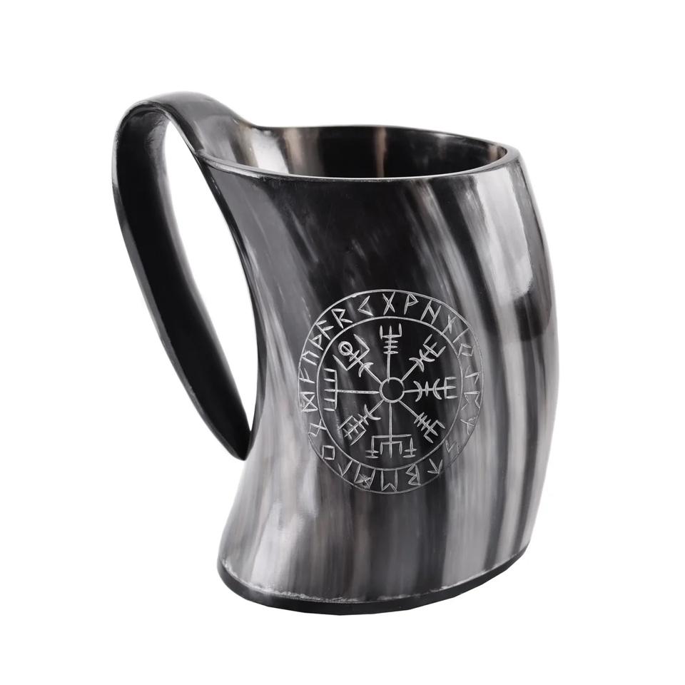 Mug en corne de buffle naturelle de haute qualité avec poignée, idéal pour la bière, le vin, la hydromel, l'ale / Chope à boire en corne