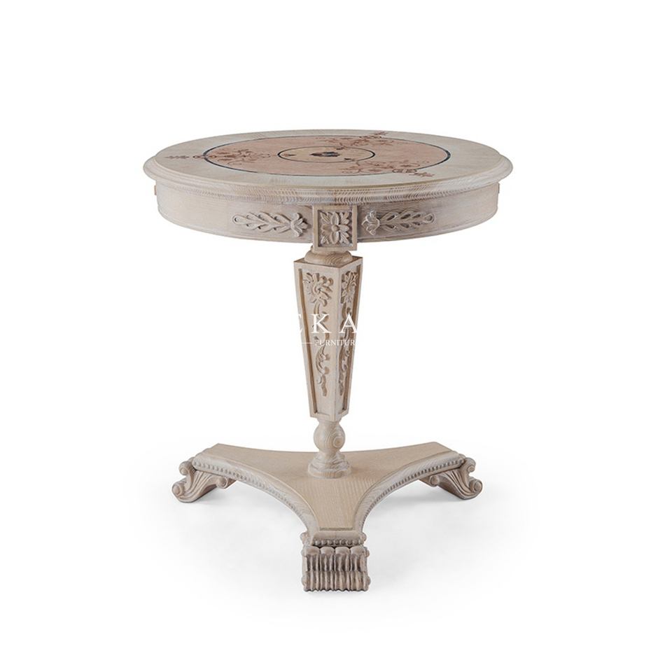 Conception Antique En Bois De Frêne Coquille Décoration Rond Coin Table D'appoint
