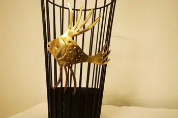 Design antique couleur noire maille fil seau forme poisson doré Design support parapluie seau maison hall fournitures élégant stockage