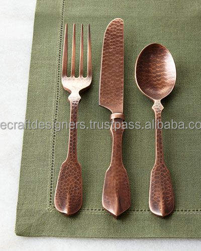Cuillère et fourchette en acier en métal polonais de cuivre de conception antique accessoire de vaisselle de cuisine d'hôtel de maison moderne léger de haute vente