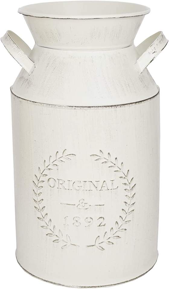 Canette à lait en fer au design antique avec poignée et 3 filières rondes Taille personnalisée Canette à lait galvanisée à la main Forme ronde