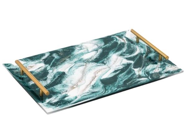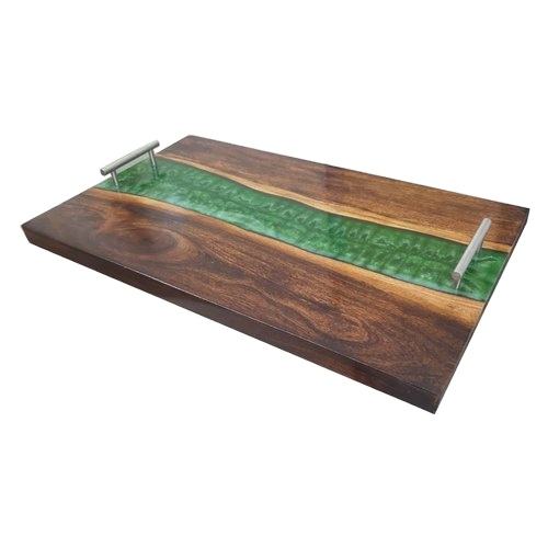 Grand plateau de service personnalisé au design antique, fabriqué à la main en bois de noyer de haute qualité avec plateau de restauration en résine époxy
