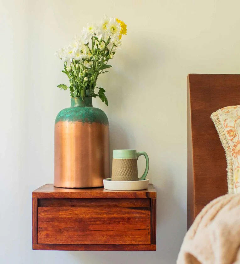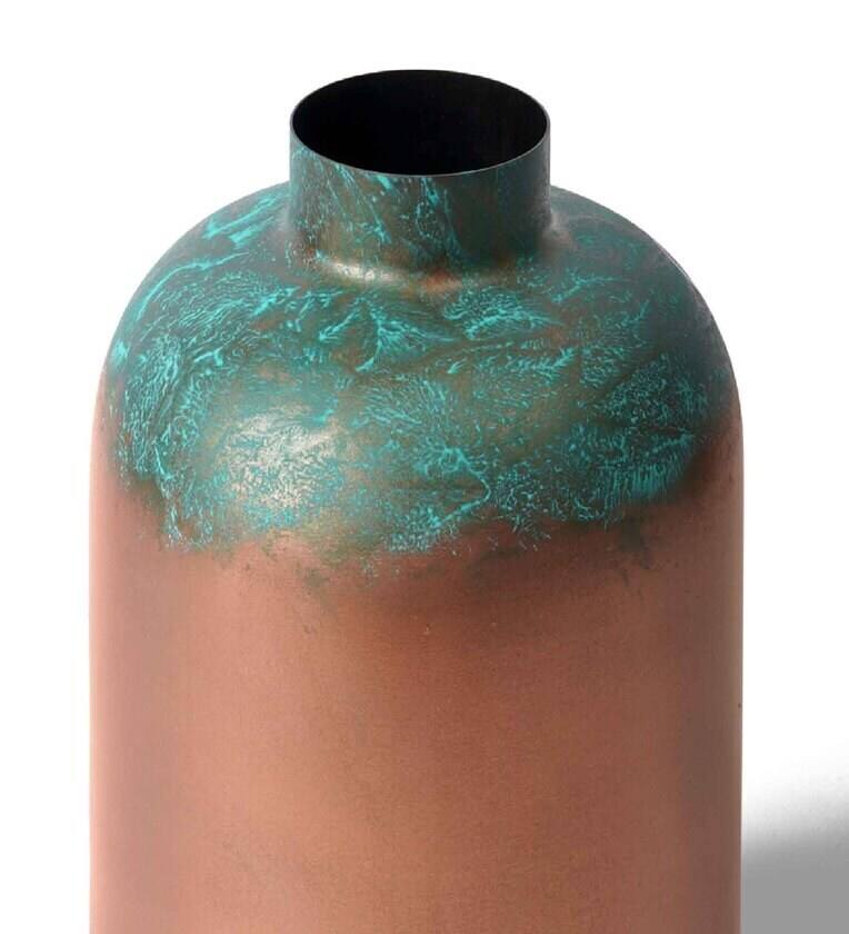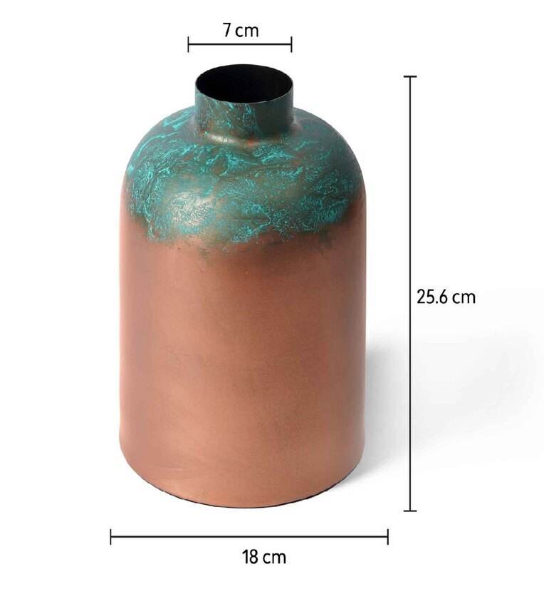Vase en métal au design zen asiatique moderne pour les tables rustiques traditionnelles et finition peinte à la main, décoration d'intérieur écologique