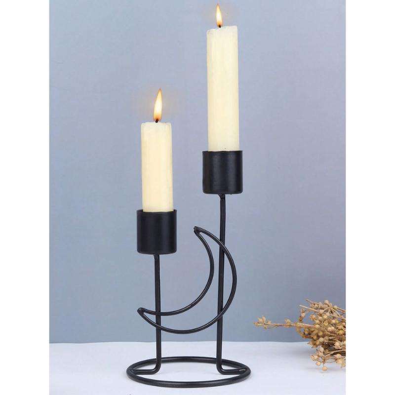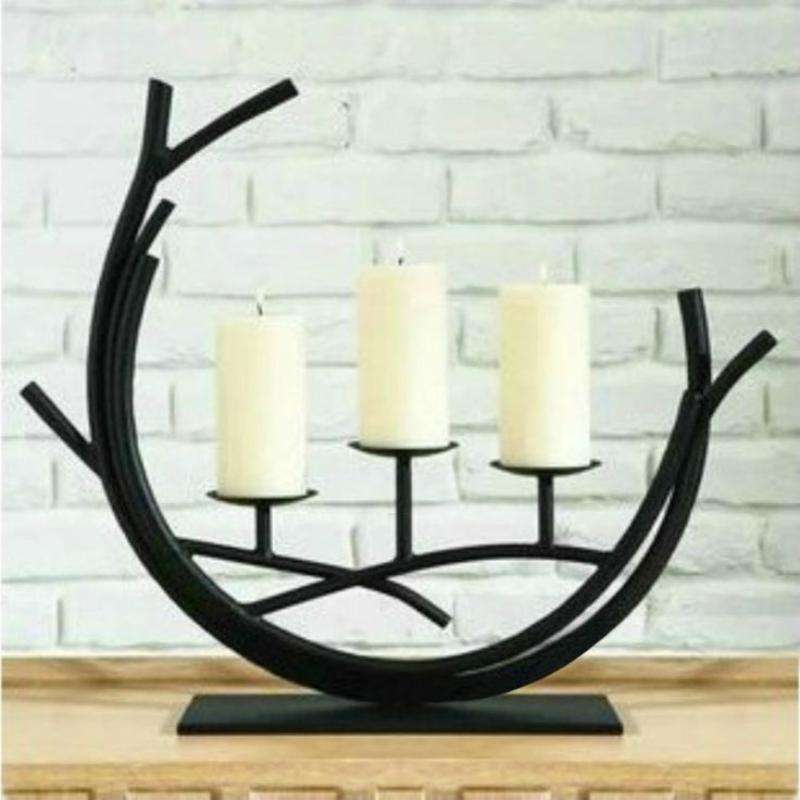 Bougeoir en métal de qualité supérieure au design antique avec finition en poudre noire utilisée au centre de table