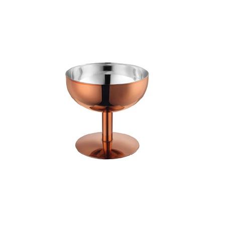 Tasse de crème glacée d'acier inoxydable de conception antique avec la tasse de crème glacée de forme ronde de base de cuivre pour l'usage d'hôtel et de restaurant
