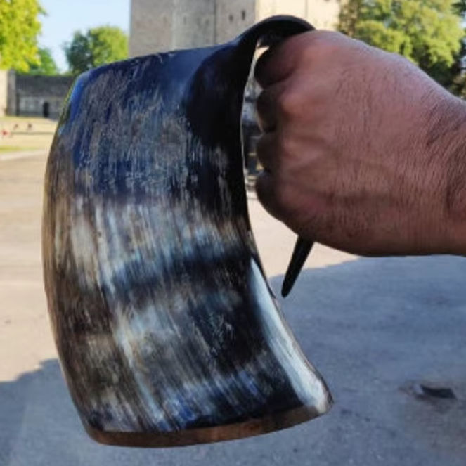 Corne à boire viking en corne véritable, style animal, écologique, faite à la main, design antique, forme naturelle polie, décoration d'intérieur